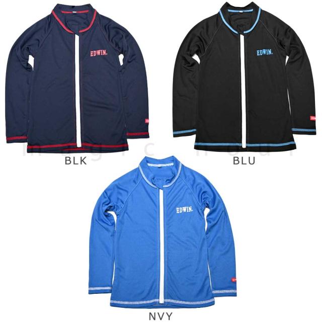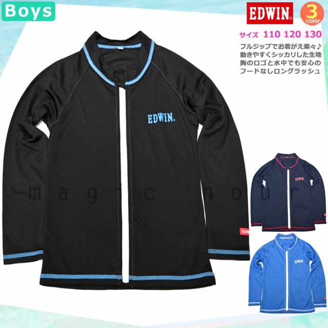 ◆ ラッシュガード キッズ ジュニア ボーイズ 長袖 EDWIN エドウィン UVカット フルジップ フードなし ラッシュ 速乾 ストレッチ 学校 無地 ワンポイント UPF50+ ◆