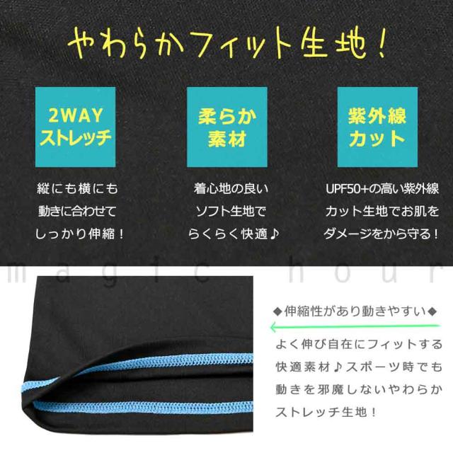 動きやすいラグラン切替デザインとワンポイントロゴがお洒落♪スポーツや学校でも使えそうな速乾ストレッチ素材のラッシュでお洒落に紫外線対策♪ 着るだけでUVカット&冷えからも守ってくれる。水中での安全を考慮した小さなお子様にも安心のフード無しタイプ。 UPF50+なのでお肌に有害な紫外線を90%以上カット!水を含んでも乾きやすいさらさらの吸汗速乾素材がおすすめポイント! 焼けやすい首回りもしっかりガードしてくれます♪海水浴や川遊び、プール、アウトドアなど夏のアクティビティで大活躍! |