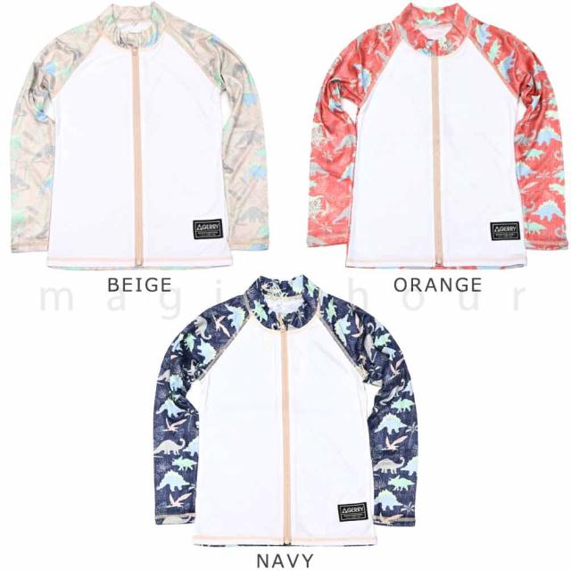 ◆ ラッシュガード キッズ ジュニア ボーイズ 長袖 GERRY ジェリー UVカット フルジップ フードなし ラッシュ 速乾 ストレッチ 学校 恐竜 かいじゅう UPF50+ ◆