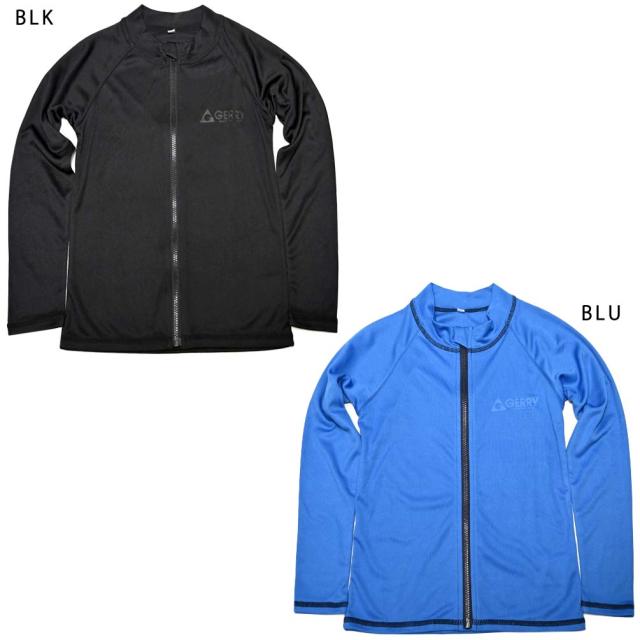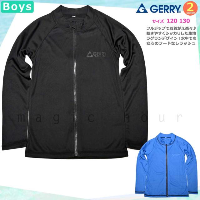◆ ラッシュガード キッズ ジュニア ボーイズ 長袖 GERRY ジェリー UVカット フルジップ フードなし ラッシュ 速乾 ストレッチ 学校 無地 ワンポイント UPF50+ ◆
