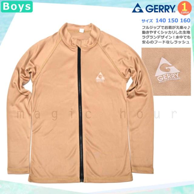 ◆ ラッシュガード キッズ ジュニア ボーイズ 長袖 GERRY ジェリー UVカット フルジップ フードなし ラッシュ 無地 速乾 ストレッチ 学校 グラデ UPF50+ ◆