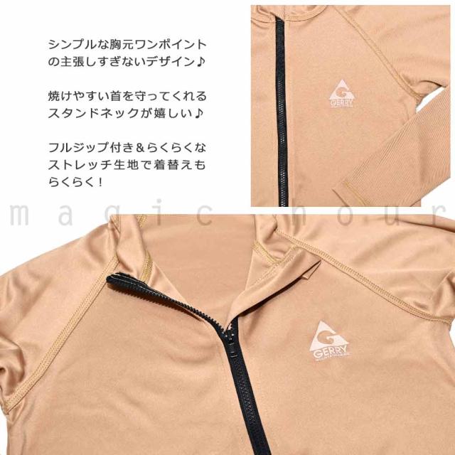 検) GERRY ジェリー イエロー からし色 コヨーテ スクール ワンポイント 子供用 スポーツ 日焼け防止 紫外線対策 男子 フルジップ プール スイミング 水泳 スイムウェア 高学年 小学生