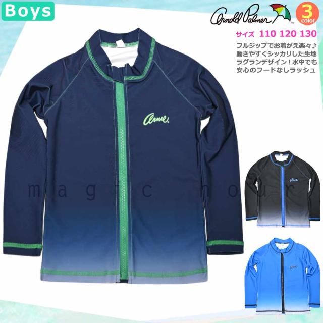 ◆ ラッシュガード キッズ ジュニア ボーイズ 長袖 Arnold Palmer アーノルドパーマー UVカット フルジップ フードなし ラッシュ 速乾 ストレッチ 学校 グラデ UPF50+ ◆