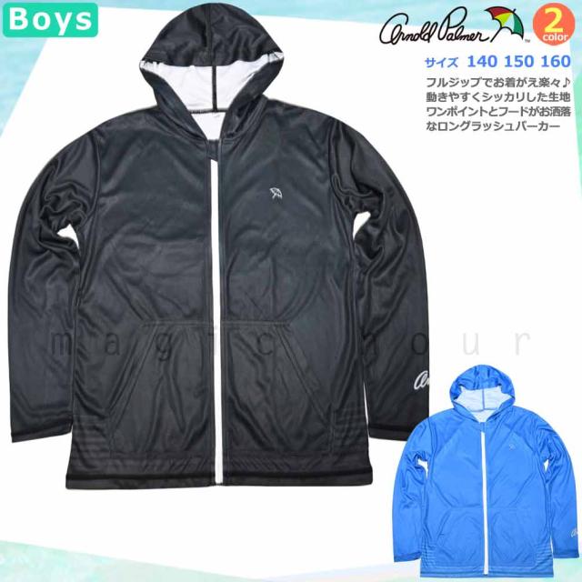 ◆ ラッシュガード キッズ ジュニア ボーイズ 長袖 Arnold Palmer アーノルドパーマー UVカット フルジップ フードなし ラッシュ 速乾 ストレッチ 学校 無地 UPF50+ ◆