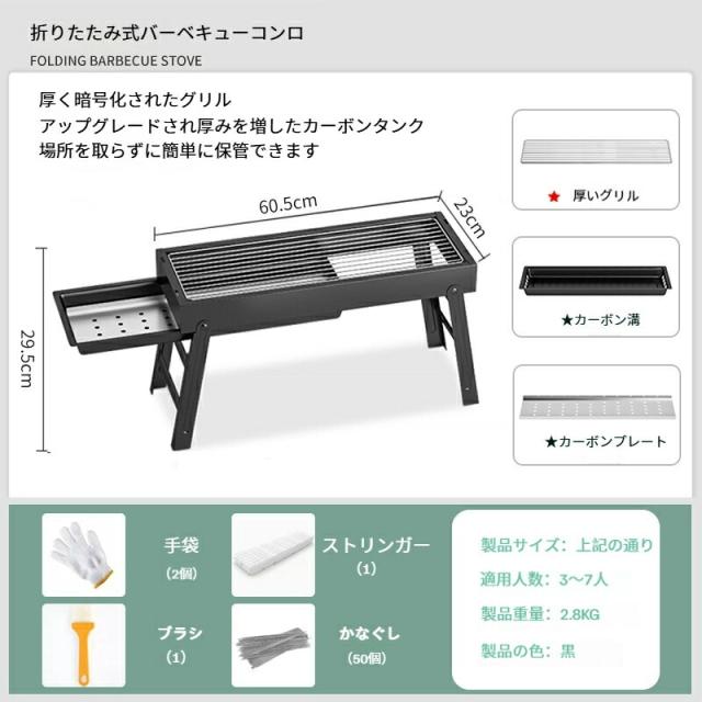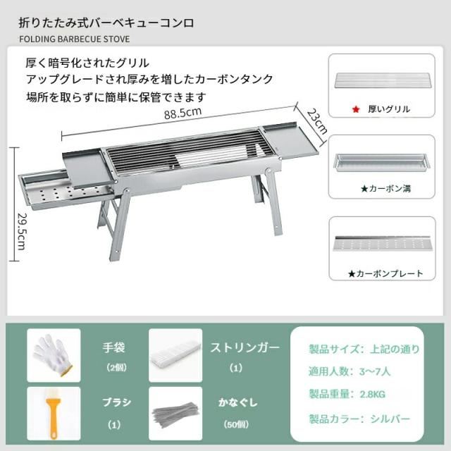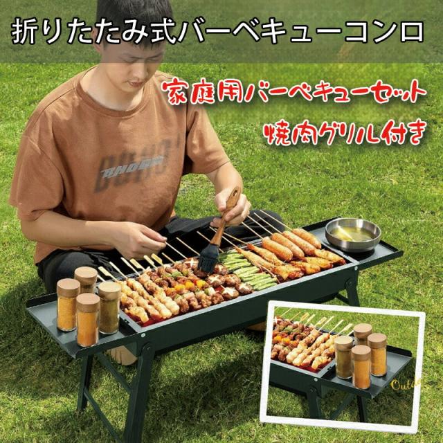 2025年新作 折りたたみ式BBQコンロ ステンレス製 携帯便利 アウトドア用 家庭用バーベキューセット 焼肉グリル付き