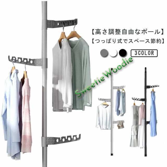 突っ張り棒 パイプ つっぱりポールハンガー 室内干し 伸縮 天井 伸縮式 つっぱり棒 ポールハンガー 棚 収納 ハンガーラック 簡単設置 つっぱりラック 突っ張りラック 折り畳み式のラック つっぱり棚 突っ張り 突っ張り棚 クローゼット 省スペース 壁面