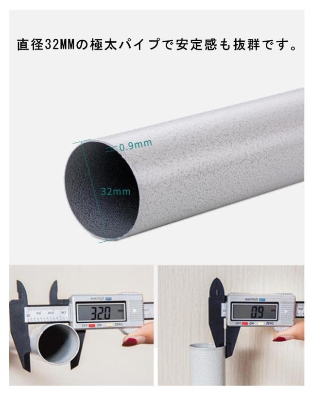 | サイズについての説明 | サイズ:セット内容:つっぱりポールハンガー*1、折り畳み式フック*3 高さ:1.1m-3.1m調整可能 パイプ直径:32mm ※サイズ計測には誤差が生じます。 |