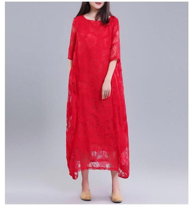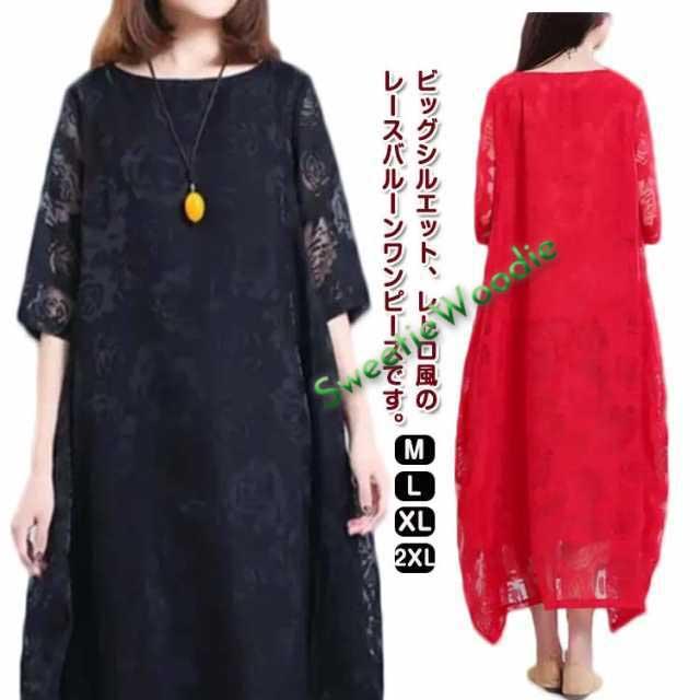 レディース きれいめ 夏 バルーンワンピース ワンピース コクーンワンピース マキシワンピース ロングワンピース 半袖 体型カバー シースルー XL 着痩せ 大人らしい ビッグシルエット M L レースワンピース