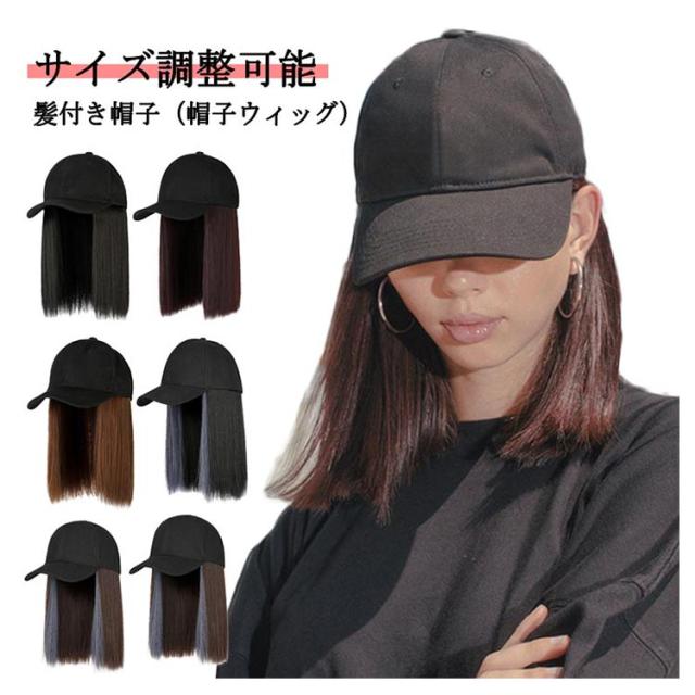 ウィッグ ウィッグ レディース 帽子一体型 ウィッグ付き帽子 髪付き帽子 キャップ 毛付き帽子 26cm カツラキャップ マジックテープ サイズ調整可能 日焼け止め