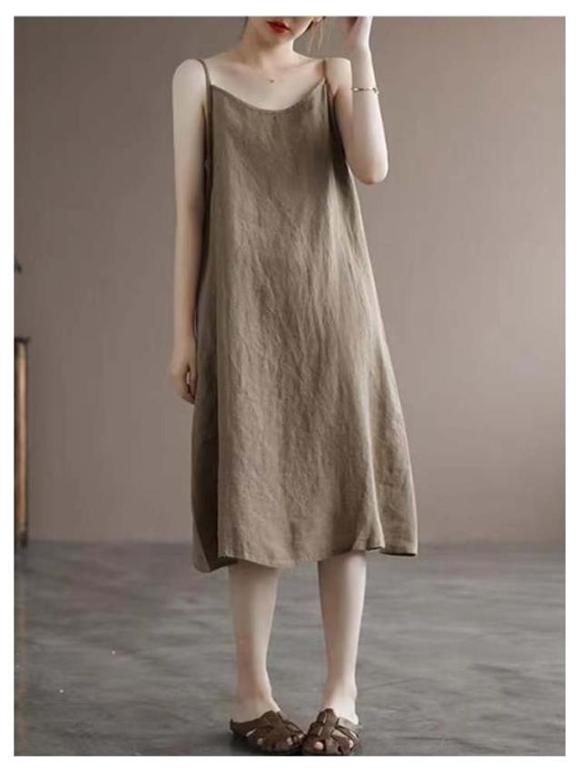 | 綿麻調素材のロング丈キャミワンピ! 柔らかいコットン生地、夏は涼しいし冬は静電気では心配しない。 ゆったりとした身幅でリラックスした着心地。 体型もカバーしながらこなれ感のあるお洒落が楽しめる。 長めな丈感が大人っぽく、シンプルなきれいめ感が漂う。 シンプルなデザインなので、トップスとボトムスとも合わせやすく、重ね着が楽しめます♪ | |