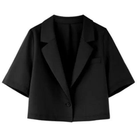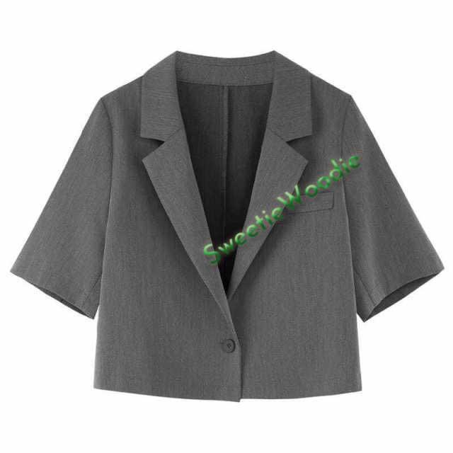 テーラードジャケット サマージャケット シングルブレスト 半袖 ショート丈 レディース 薄手 無地 春 夏 秋 カジュアル 韓国風 着回し