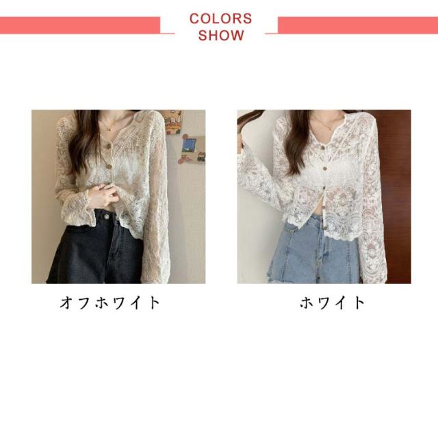 サマーカーディガン ショート丈 レース 長袖 ボレロ 刺? 透かし編み UVカット カーディガン vネック 日焼け止め 送料無料 羽織り 冷房対策 オフィス カジュアル 薄手 トップス コーデ 春夏 レディース