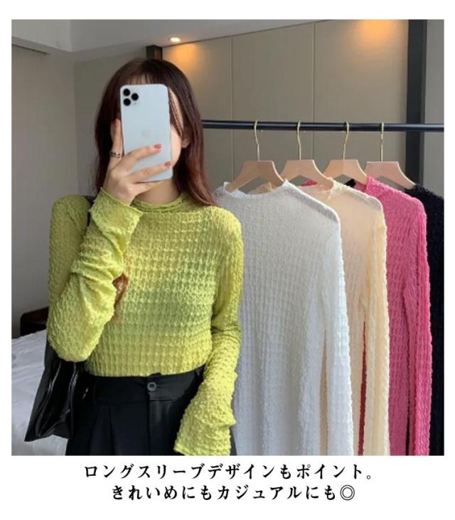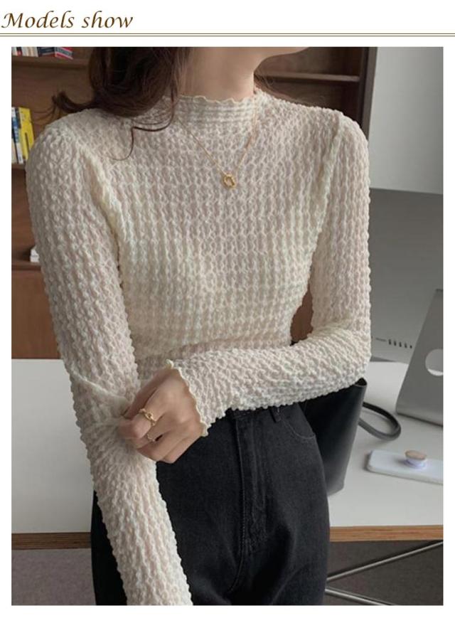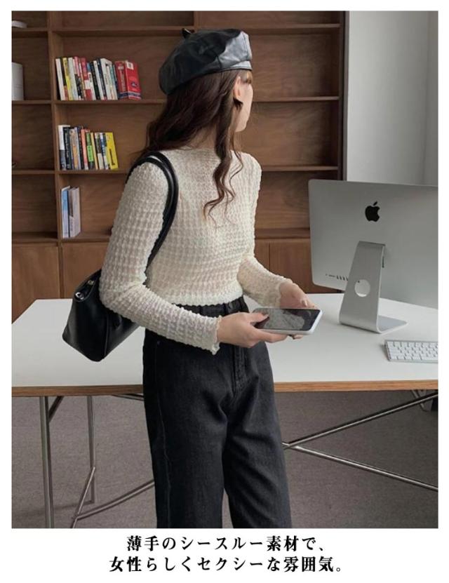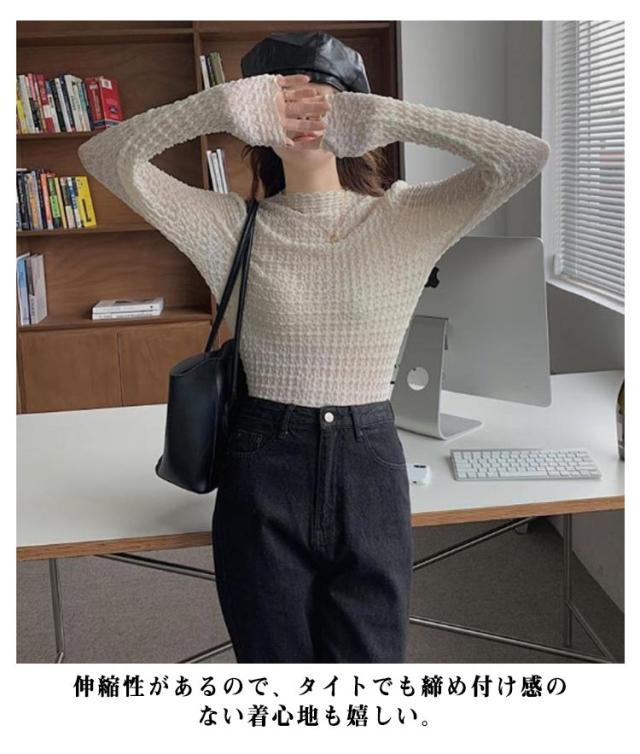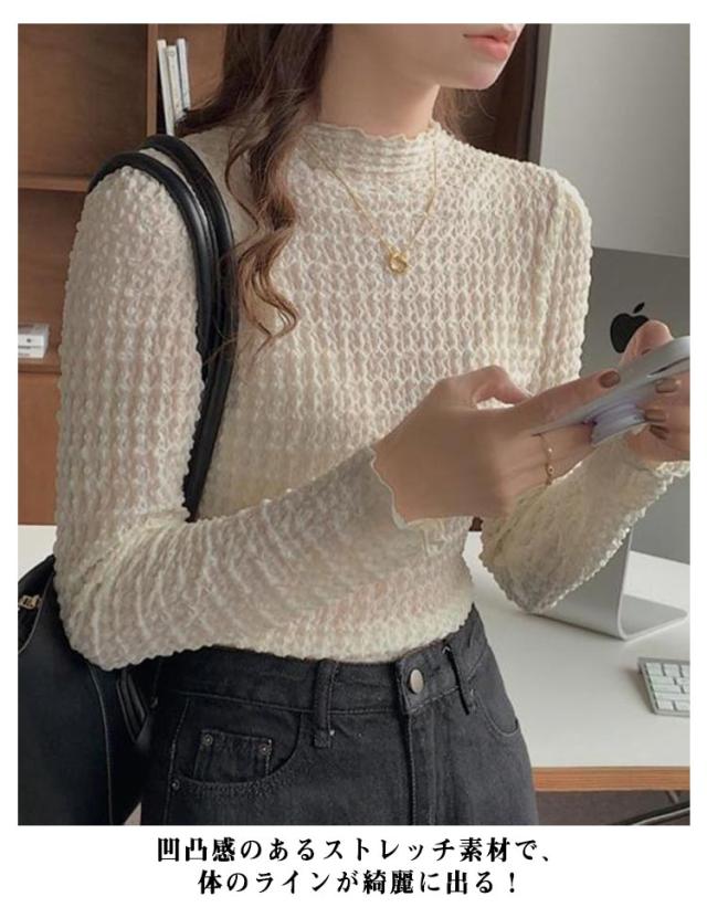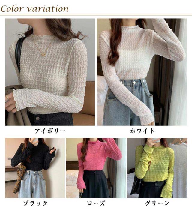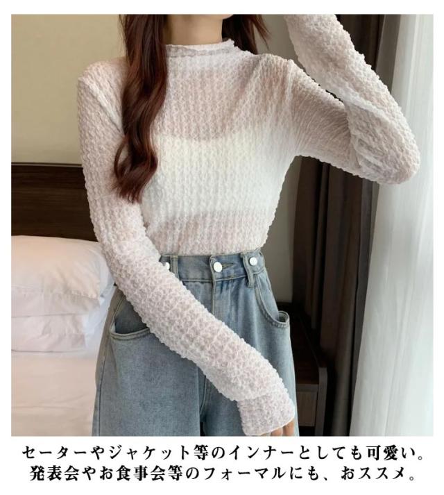 ブラウス シースルー セクシー ハイネック Tシャツ トップス レース くしゅくしゅ 30代 インナー タイト ブラウス 40代 薄手 薄い 春夏 レディース タートルネックシアーカットソー ロンt レイヤード 重ね着 肌見せ