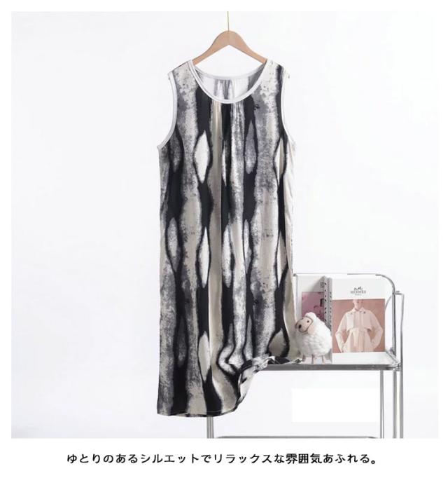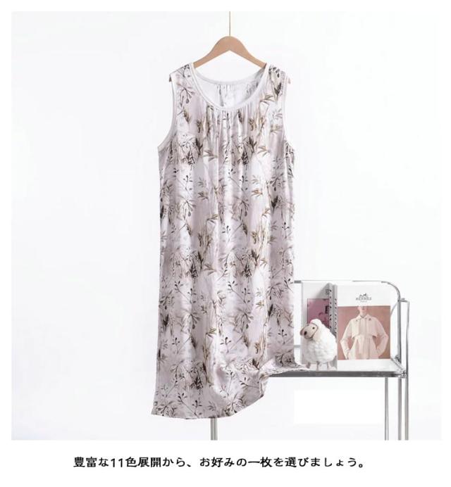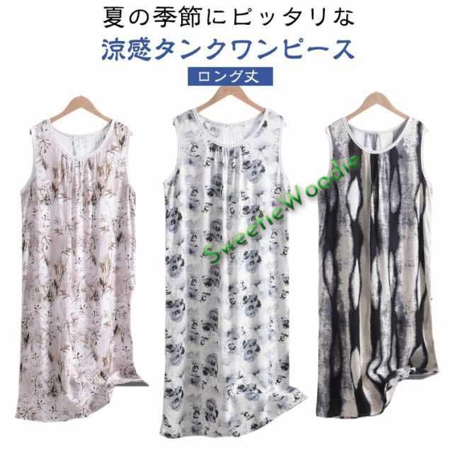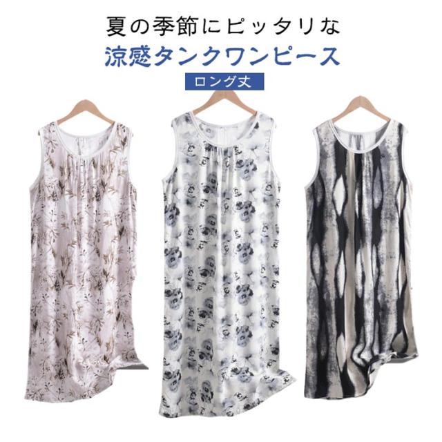 涼感 寝間着 タンクワンピース レディース 接触冷感 ルームウェア 薄手 夏 涼しい 総柄 部屋着 パジャマ ロング丈 寝巻 ルームワンピース 薄手 ノースリーブ 大きいサイズ ゆったり リラックス かわいい 大人 女性 入院 ひんやり シニア ギフト プレゼント