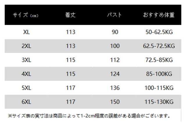 | サイズ | XL 2XL 3XL 4XL 5XL 6XL |