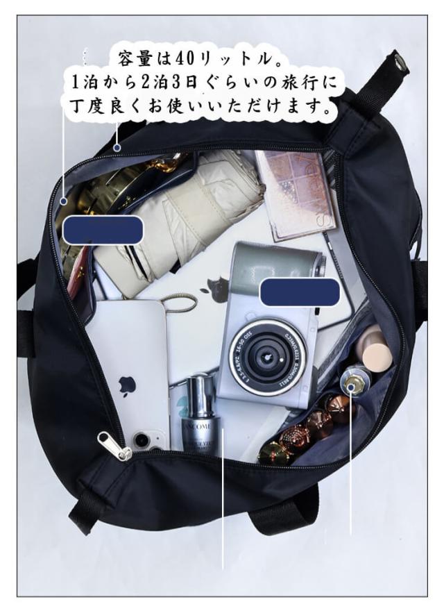 | 旅行バッグやスポーツバッグとして、プールバッグやジムバッグ、マザーズバッグとしてなど様々なシーンでお使いいただけます。 容量は40リットル。1泊から2泊3日ぐらいの旅行に丁度良くお使いいただけます。 底のファスナーを開ければ拡張も可能。 通し穴にハンドルを通せばキャリーオンも◎ 表地は撥水加工を施しているので急な雨でも安心してお使いいただけます。 | |