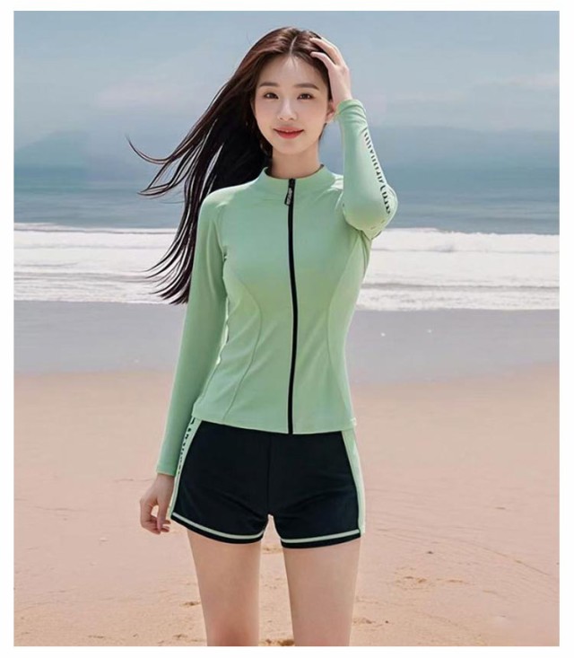 | レディースラッシュガード3点セット 長袖ラッシュガード、ショートパンツ、レギンスの3点セットが自由に組み合わせ可能。 ビーチ、プール、アウトドア、ウォーキング、ジョギング、ホットヨガなど レジャーから各種トレーニングまで幅広いシーンでお使いいただけます。 | |