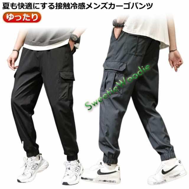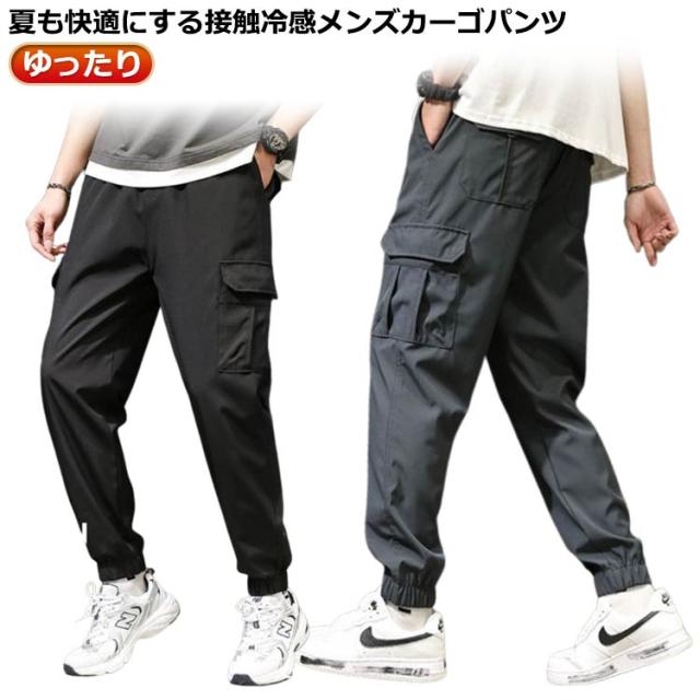アイスシルク ロングパンツ 無地 メンズ 夏 ひんやり 無地 薄手 接触冷感 涼感 ジョガーパンツ 作業着 ワークパンツ 涼しい 冷感パンツ イージーパンツ ゆったり 大きいサイズ ロング丈 長ズボン ウエストゴム カジュアル カーゴパンツ