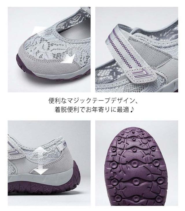| 通気性抜群で着脱便利の紐なしスニーカー 靴全体はソフトなメッシュ素材で、熱がこもりやすい部分の通気性を確保し、ウォーキング中も快適な状態をキープできます。 靴底には耐摩耗性に強い素材を採用しており、滑り止め加工されるのによって、地面との摩擦力を増やして滑り止め効果がより一層アップ。晴れの日だけではなく、雨の日も滑り転んだ心配がなく快適に歩けます。 便利なマジックテープデザイン、着脱便利でお年寄りに最適♪ 母の日・敬老の日のプレゼントとしてもおすすめアイテム。 | |