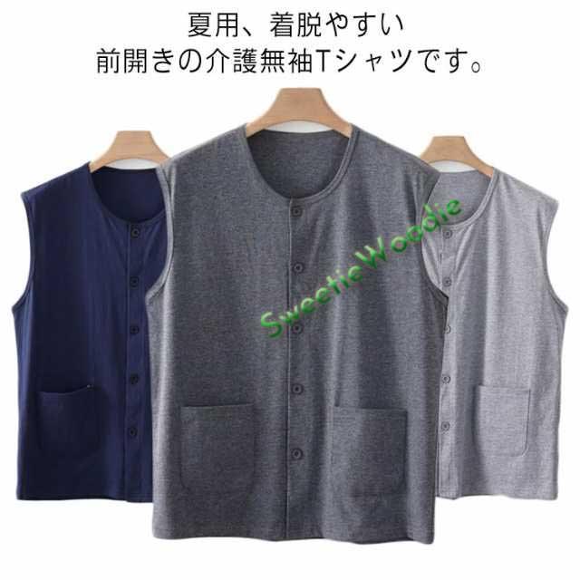 シャツ インナー 前開きTシャツ トップス ノースリーブ 前開き 介護 シャツ 紳士 タンクトップ 介護ねまき ルームウェア インナーシャツ メンズ 介護 介護服 下着 寝巻き 無袖 介護肌着 肌着 介護寝巻き 入院着 前あき肌着 XL 2XL 3XL 着脱やすい