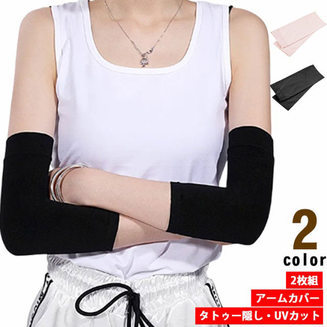 2枚組 クール 黒 隠す カバー 刺青隠し アームカバー タトゥー隠し サポーター 接触冷感 UVカット ストレッチ 無地 日焼け対策 傷跡隠し メンズ レディース 男女兼用 薄手 二の腕