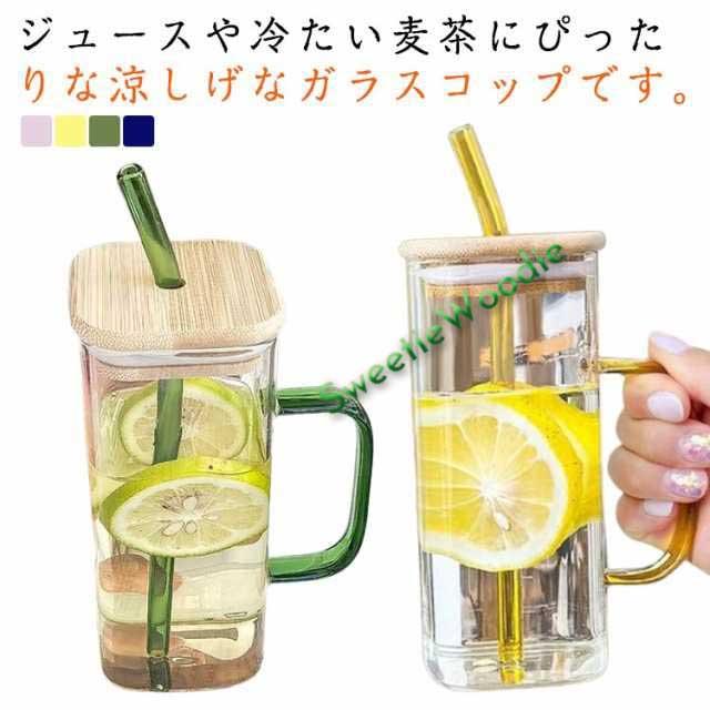 持ち手 蓋付き 耐熱 冷温両用 大容量 直飲み おしゃれ お酒 ティーカップ ボルト 麦茶コップ 400ml 直飲み ストロー付 おしゃれ ガラスコップ コーヒーカップ マグカップ ハンドル付き 竹製蓋 クリア コーヒー 紅茶 シンプル マグボトル
