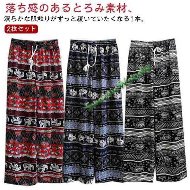 とろみ 2枚セット ステテコ レディースステテコ リラックスパンツ ウェストゴム 9分丈 部屋着 部屋着 サラテロパンツ ルームパンツ リラックス 送料無料 涼しい 象 柄 ワイドパンツ