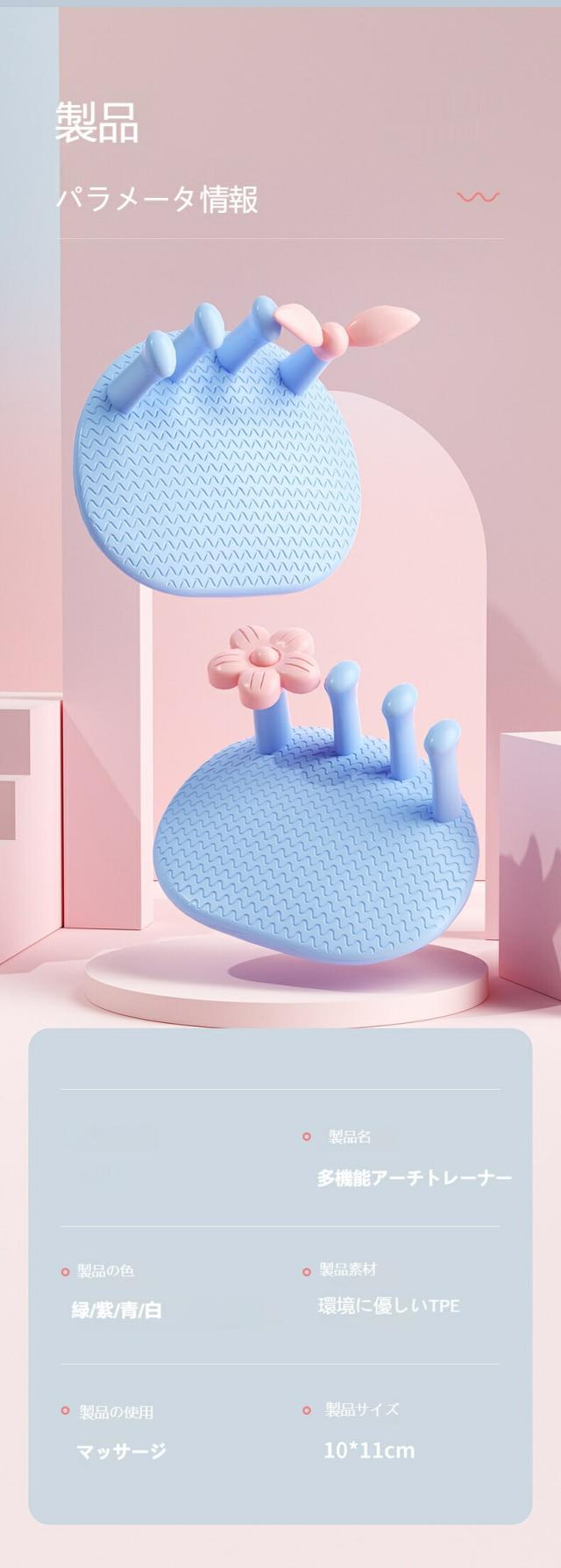 商品情報商品詳細説明自宅で簡単に足指トレーニングができる美脚サポート器具。足底筋を刺激しながら、足指の開きをサポートし、外反母趾の予防改善にも効果的。毎日10分の使用で、足裏バランスを整え、O脚X脚や下半身太りのケアに。柔らかい素材で痛くなりにくく、初心者にも使いやすい。デスクワーク中やお風呂上がり、テレビを見ながら手軽に美脚習慣を始めましょう。