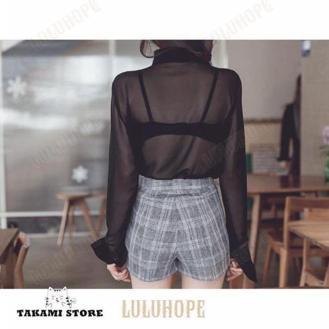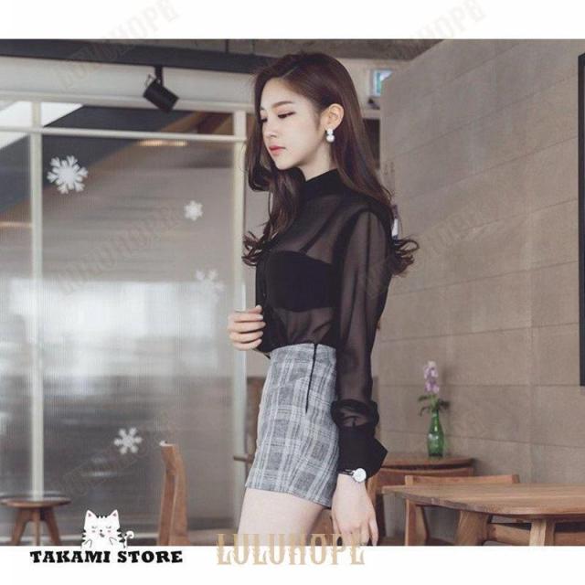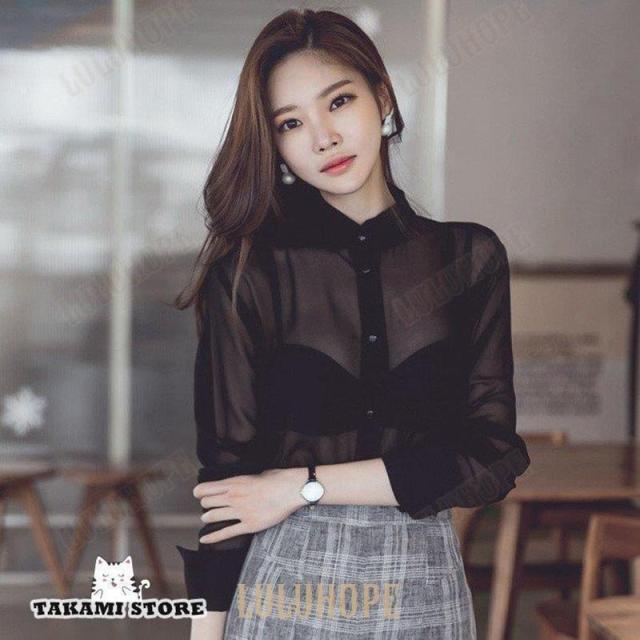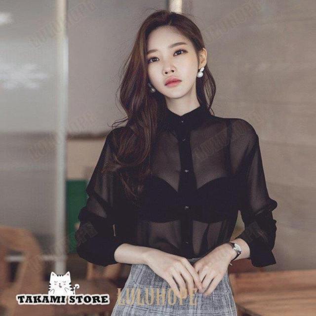 シースルー シャツ ブラウス トップス レディース シフォン 長袖 大きいサイズ 前ボタン 透け感 肌見せ シースルートップス シアーシャツ シアートップス シアーブラウス 春 夏 秋 黒 ブラック 韓国 ファッション 羽織りもの 20代 30代 春服 秋服 夏服 春物 夏物 秋物