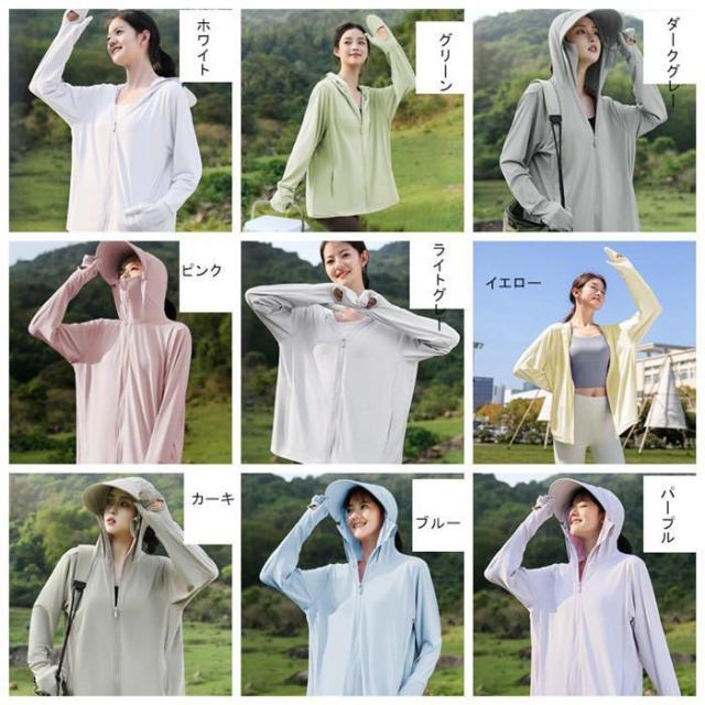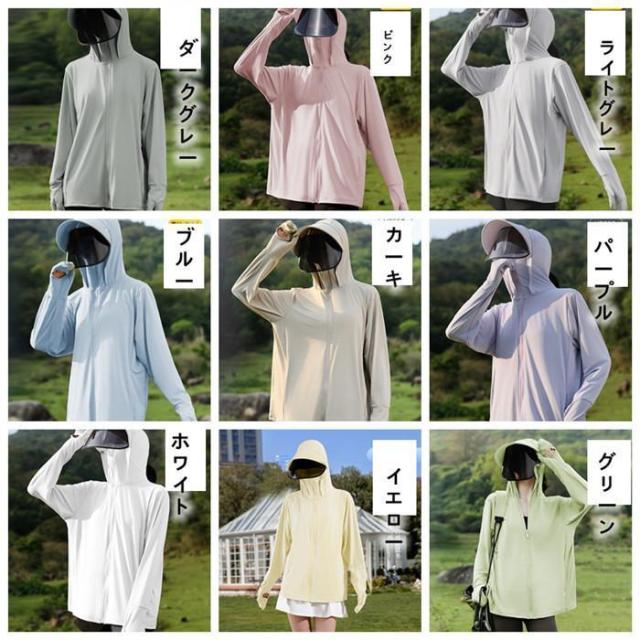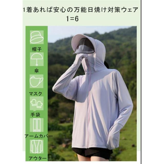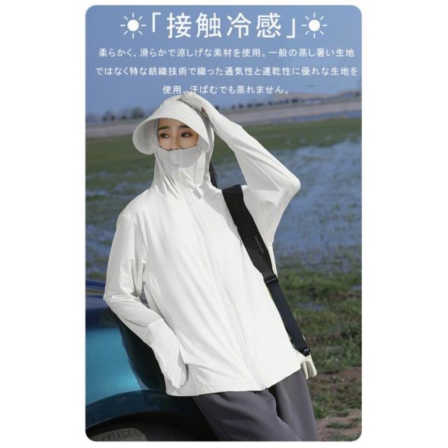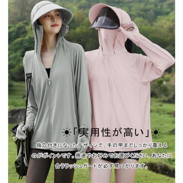 UV パーカー 冷感 -7℃ レディース 長袖 ラッシュガード 遮光 つば UVカット アウター 2 通気口 指穴 取り外し サンバイザー 日焼け防止服 大きいサイズ