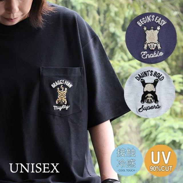 【メール便50】 Tシャツ 半袖 メンズ レディース クルーネック 胸ポケット アニマル 刺繍 コットン ナイロン 鹿の子 接触冷感 紫外線対策 UVカット ストレッチ 動きやすい 涼しい 大きいサイズ 体型カバー カジュアル 夏 パティ