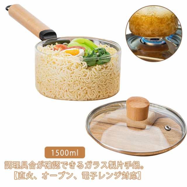 ガラス 片手鍋 ガラスパン 1500ml ソースパン ミルクパン 北欧風 耐熱ガラス 直火 オーブン 電子 レンジ対応 クリア 透明 蓋付き ガラス鍋 離乳食 卓上鍋 木製ハンドル 一人暮らし 多機能 耐熱 キッチン 調理器具 ガラスポット 送料無料