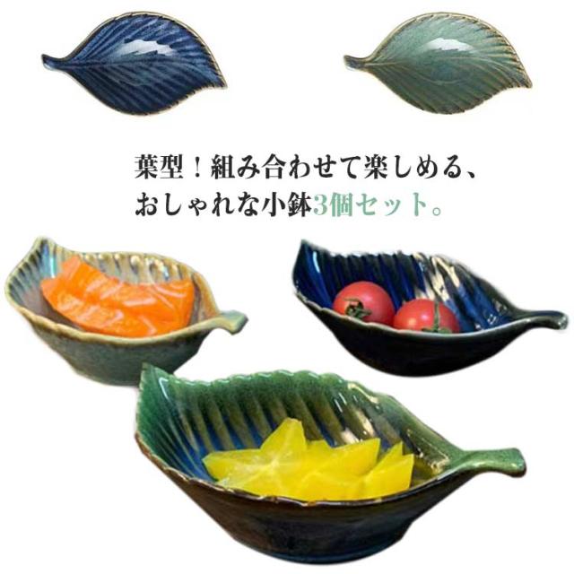 葉形 小鉢 おしゃれ 和食器 食器セット 3個セット モダン 珍味小鉢 ミニボウル 薬味皿 醤油皿 漬物皿 葉型 ボウル カフェ風 電子レンジ対応 食洗機対応 醤油入れ 珍味入れ カフェ風
