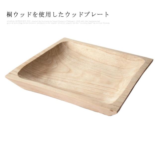 ウッドプレート 【木製品】長25cm ウッド 雑貨 木のお皿 桐ウッド おしゃれ ウッドプレート 食器 ランチプレート キッチン 北欧 カフェ 厚さ5cm シンプル かわいい 四角プレート