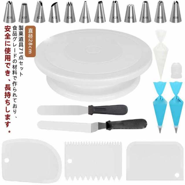 71点セット ケーキ 回転台 直径28cm ケーキ装飾台 絞り口金セット 絞り袋 絞り口金 ターンテーブル ケーキスタンド ベーキング ツール デコレーション用 ケーキ作り用 お菓子作り セット 器 ケーキ手作りツール 滑り止め 製菓道具セット