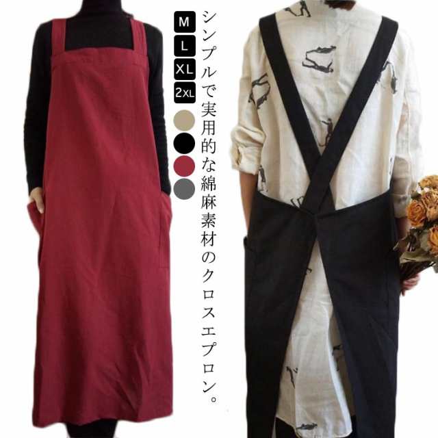 | シンプルで実用的な綿麻素材のクロスエプロン。 スポッとかぶるだけで着られて、着丈長めなのでワンピースみたいに使えます。 薄すぎず厚すぎず通気性よく綿麻素材で、通年使えそうです。 ポケットが横についているので、屈んだときに入れたものを落とさずにすみます。 太めの肩紐&バッククロスのデザインで、肩への圧迫が減ります。 | |