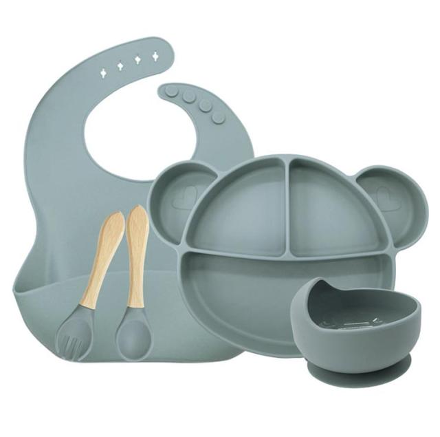 【5点セット】ベビー 食器 シリコン ひっくり返らない 食洗機対応 お食事プレート 食事エプロン 離乳食プレート 食器セット 食洗機対応 吸盤付き 女の子 男の子 お皿 離乳食 赤ちゃん 出産祝い ギフト プレゼント 電子レンジ 煮沸対応 送料無料