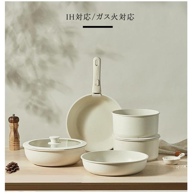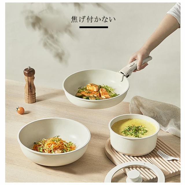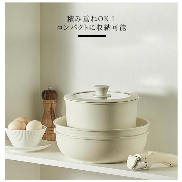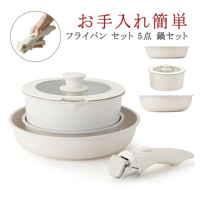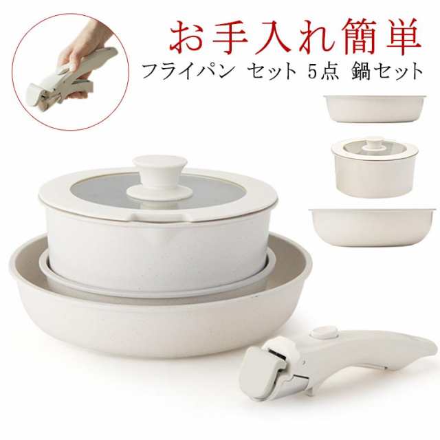 フライパン セット 5点 鍋セット IH対応 ガス火対応 取っ手が取れる ソースパン 焦げ付かない セラミック フライパンセット 蓋付き 鍋 くっつかない 積み重ねOK コンパクトに収納可能 お手入れ簡単 家庭用 子供 一人暮らし 簡単調理 軽い 食洗機対応 送料無料