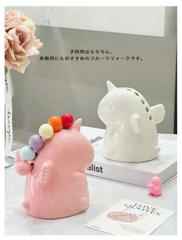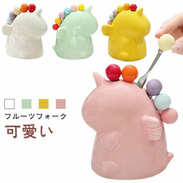 フルーツフォーク 可愛い ユニコーン台座+フォーク6本 セット 果物フォーク フルーツピック ミニフォーク セラミックス フードピック ピックフォーク フォーク カトラリー デザートフォーク キッチン雑貨 陶器のオブジェ かわいい