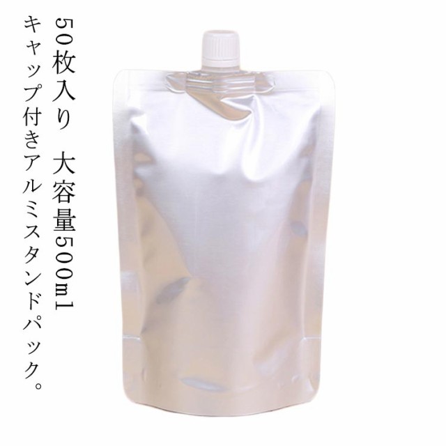 50枚入り アルミ製 スタンドパウチ 500ml 詰め替え容器 アルミパウチ パウチ スパウトパウチ 自立式 キャップ付き 袋 ふた付き袋 詰め替え用 保存容器 液体包装 袋 洗剤 蓋付 ガゼット袋 業務用 耐高温