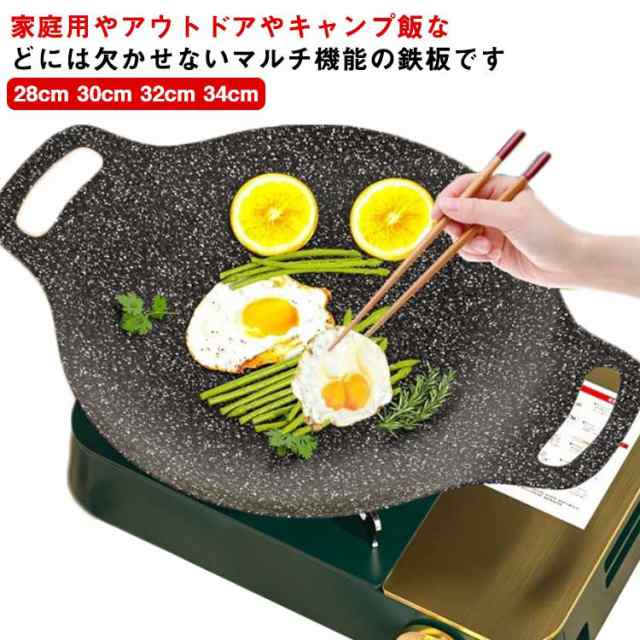 IH/ガス対応 パン グリル 鉄板 丸型 送料無料 28cm 30cm 32cm 34cm 直火対応 ガスコンロ 炭火 ステーキ 焼肉 プレート BBQ アウトドア 調理用品 キッチン キャンプ バーベキュー 家庭用 登山