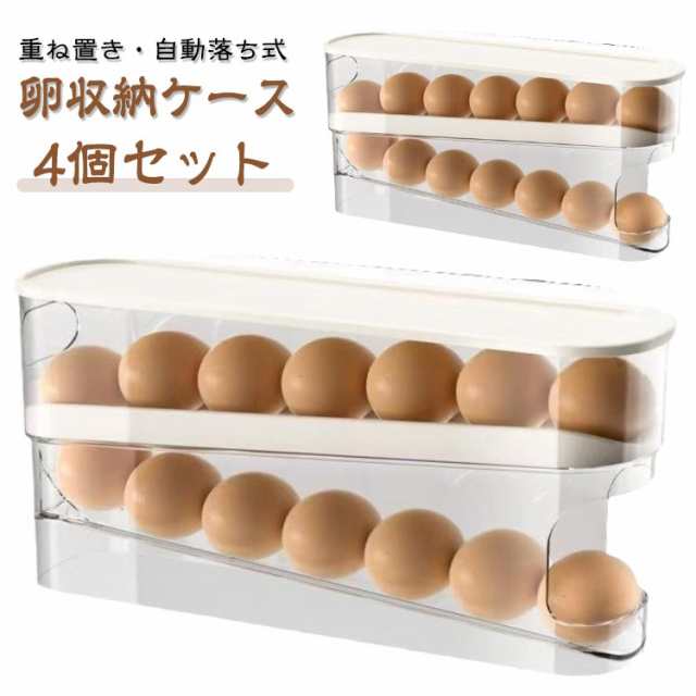 4個セット 自動落ち式 卵入れ ケース 卵収納ボックス 自動ローリング 卵 12枚 収納 2段エッグラック 卵ケース 冷蔵庫用 卵 オーガナイザー たまご 収納ケース 省スペース 卵ディスペンサートレイ キッチン 卵の容器 取り出し便利 たまご収納 フタ付き たまご収納棚 重ね置き
