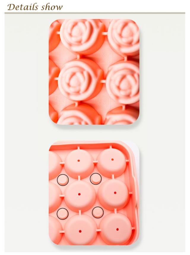 | 美しいバラ型の製氷皿です。 アイストレーが高品質のシリコンを採用しており、 無毒無害で安全性を保証され、冷えても硬くならないです。 柔らかいシリコンで、長い時間に冷蔵しても、氷を簡単に取り出すことができます。 製氷皿で一気9個の氷作られて、ウィスキーなどのお酒はもちろん、 ジュース、アイスコーヒー、紅茶、果物、牛乳など、お好みにより自分らしい飲み物を作られます! 蓋付けの製氷皿で、氷を作る場合に、冷蔵庫にあるほかの食品で汚染されることが防ぎれます。しっかり味を保持してくれます。 オーブン・電子レンジ・冷蔵庫・冷凍庫に対応し、シャーベットや焼き菓子も作れます。 ウィスキー、スキー、カクテル、シャンパン、ブランデー、などのお酒はもちろん、 お茶、水、紅茶、コーヒー、ミルクなどの飲み物と、一緒に飲むのは、最高です。 夏が不可欠なもの、おススメです! | |