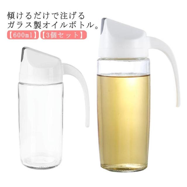 3個セット オイルボトル ガラス 600ml オイル ビネガー ボトル オイルポット 油ポット ドレッシングボトル 調味料入れ 油入れ スリム おしゃれ 液だれしない 洗いやすい 詰め替え 調味料 ボトル 保存 容器 保存瓶 出汁 片手開閉 オリーブオイル 【送無】