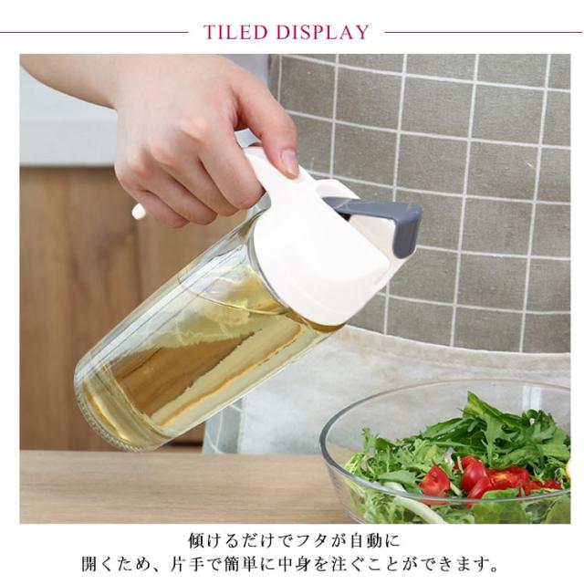 | 傾けるだけで注げるガラス製オイルボトル。【600ml】【3個セット】 傾けるだけでフタが自動に開くため、片手で簡単に中身を注ぐことができます。 お料理をしながら片手で使うことができるため、日常のお料理に活躍しそうです。 中身の減り具合いが見やすく、詰め替え時がわかるというメリットもあります。 シンプルなデザインでキッチンにもなじみやすく、シリーズでお使いいただくのもおすすめ。 | |