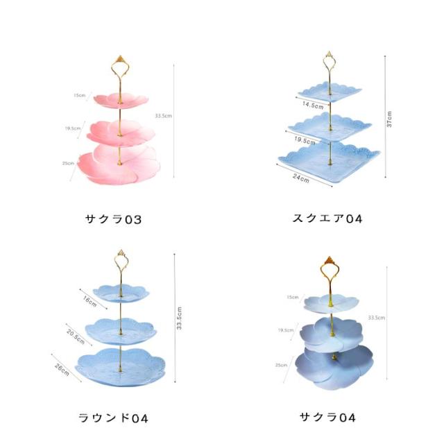| 全3タイプ選べるデザイン、かわいいケーキスタンド プラスチックだからガラスと違って割れる心配なく長く愛用できる。 パ一ティでも安心して子供のテ一ブルに置ける 解体ができるから収納場所を取らない これ1つでアウトドアの質がグレ一ドアップ! | |