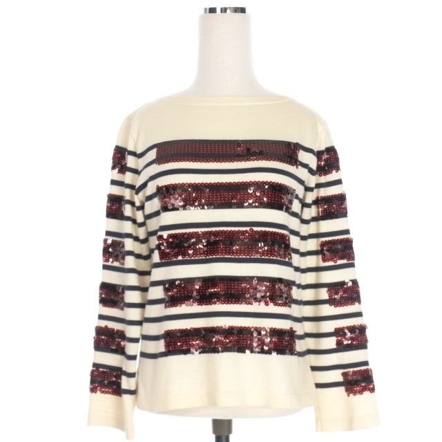 【中古】マークジェイコブス MARC JACOBS コットンカシミヤ スパンコール ボーダーニット セーター 長袖 XS