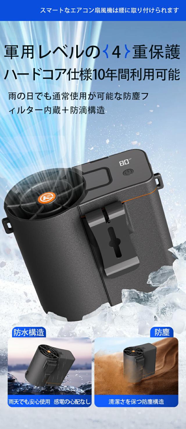 腰掛け扇風機 ウエストファン 冷却ファン 小型扇風機 強風扇風機