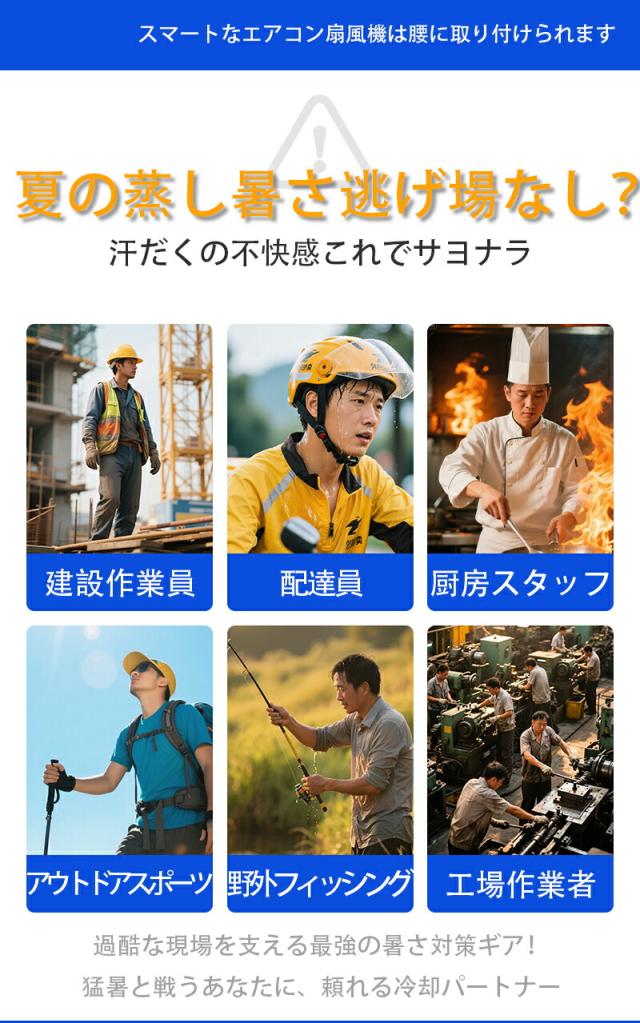 | 対象 | 建設作業員 アウトドアスポ一 配達員 野外ワイッジグ 厨房スタッフ 工場作業者 |