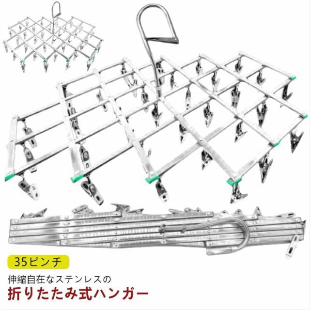 洗濯ハンガー ピンチハンガー ステンレス 折りたたみ 物干しハンガー 35ピンチ 伸縮 伸縮ハンガー 伸縮洗濯ハンガー 省スペース 物干し ハンガー 多機能収納 防風洗濯 伸びる 風通し 臭い 部屋干し 外干し 雨の日 室内干し 便利 新生活